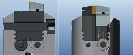 7、镗刀头灵活定制,可根据客户加工需求定制不同主偏角刀头,可针对客户具体加工状况制作特殊功能刀头。下图为插补铣端面锥度圆弧槽定制刀头刀具。